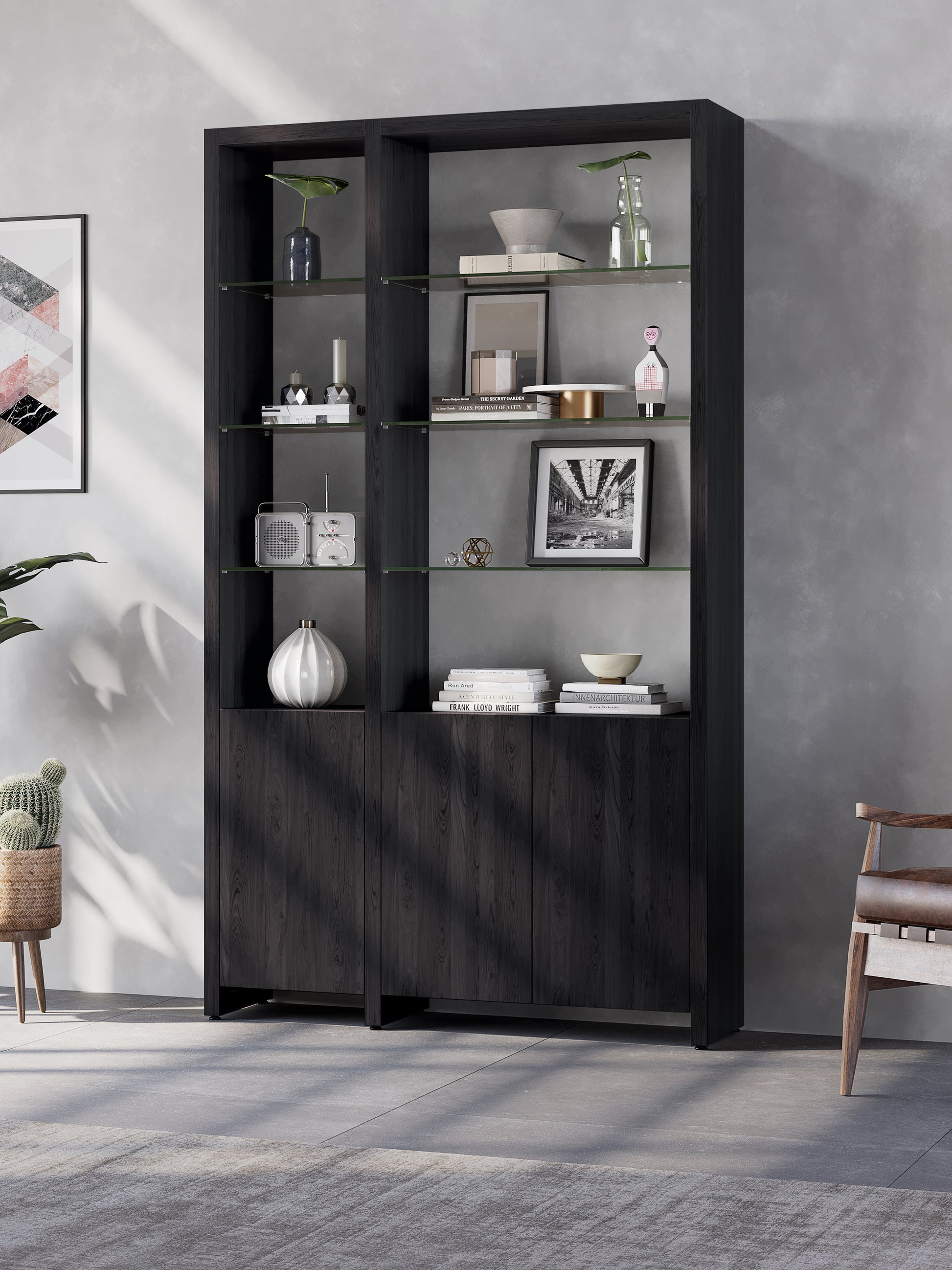 The Linea 580012 Shelf System is a smart, modern storage solution designed to complement any contemporary interior. Featuring a blend of open and concealed storage, this elegant shelf system adds both function and style to your living room, office, or open-concept space. The clean lines and natural wood finish create a refined look, while the tempered glass shelves bring an airy, light feel to the design.