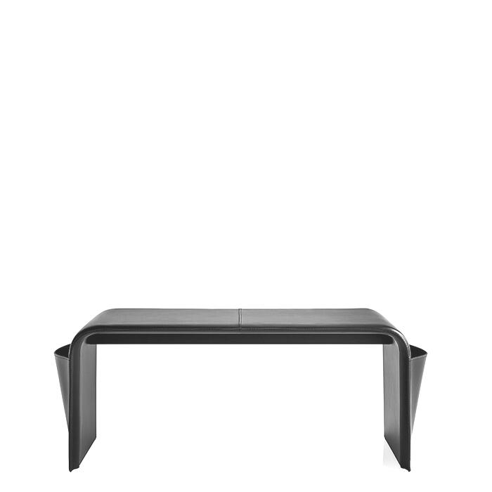 Calligaris Shape Leather Covered Bench With Pockets For Magazines