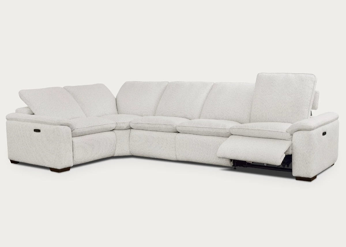 The Cloudy 5-Piece Sectional combines expansive seating, modern style, and ultimate comfort. Upholstered in soft frost fabric, this sectional features two power recliners, plush cushions, and a built-in console for convenience. Designed for gatherings, movie nights, and all-day lounging, the Cloudy sectional delivers the perfect mix of function and style for today’s living spaces.