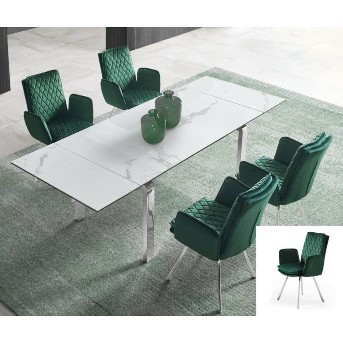 Jess Armchair in Green Velvet, Chrome Frame