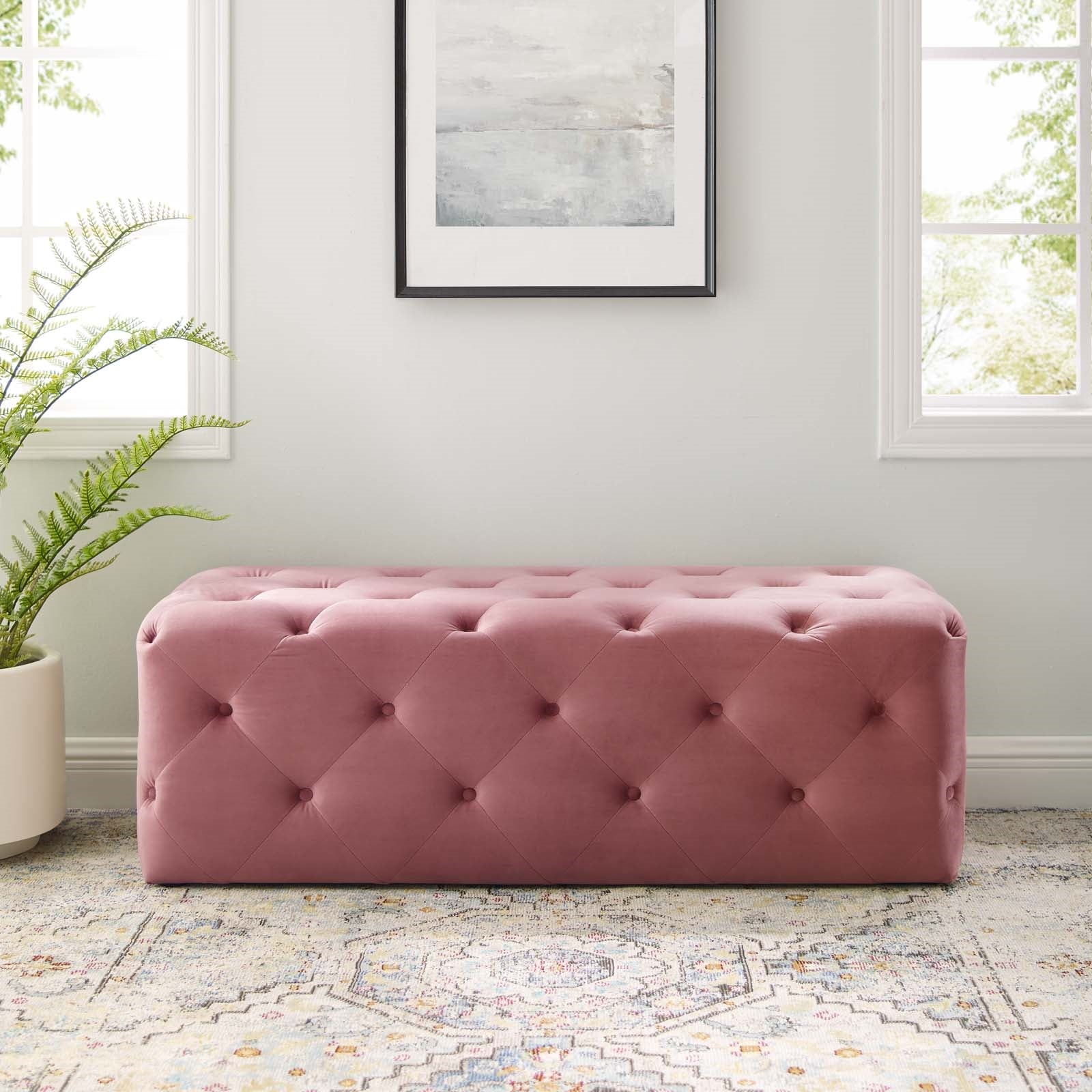 Enliven your decor with Amour. This tufted button entryway bench comes upholstered in soft and durable stain-resistant performance velvet fabric and dense foam padding for a luxurious seating experience. Instantly update your entryway, foyer, hallway, living room with this versatile 48-inch long bench.